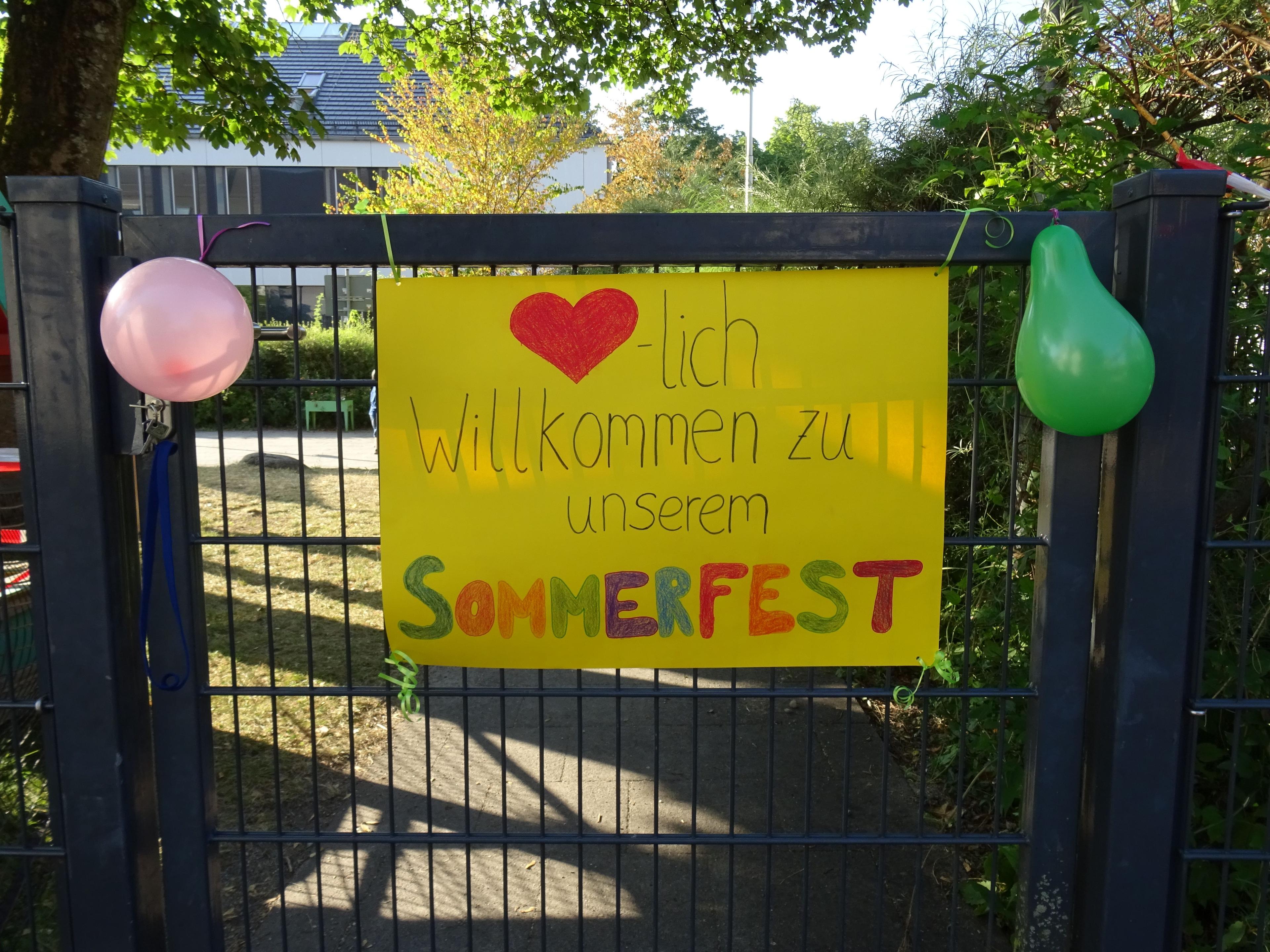 Die Sonne lachte von einem strahlend blauen Himmel auf uns herunter, so dass wir den ganzen Vormittag ein wunderschönes Gartenfest feiern konnten! Alle Kinder durften sofort im Garten spielen und wurden von zahlreichen Luftballons und Seifenblasen erwartet. Zum Frühstück veranstalteten wir ein Picknick mit lauter Leckereien, die von den Eltern mitgebracht worden waren. Danach gab es Spaß und Spiel: Alle Kinder durften auf einer großen Eisenbahn ihre Runden drehen, Enten angeln, Tiere im Heuhaufen suchen, Dosen werfen und ein Schmetterlingshaarband basteln. Zum Schluss stärkten sich noch einmal alle an Wienern und Brezen und viel Obst, bevor alle erschöpft in den Mittagsschlaf fielen…