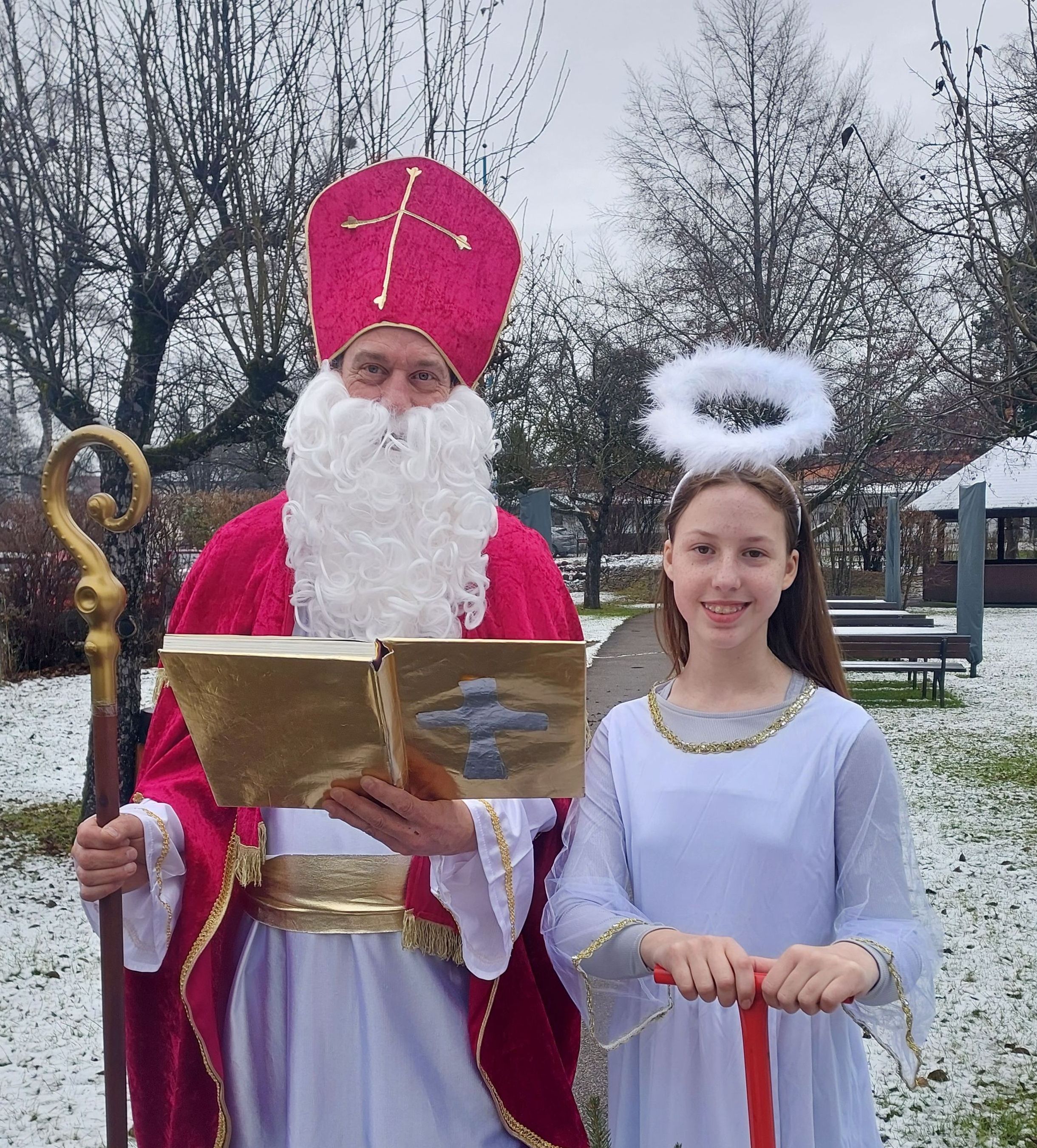 Wie jedes Jahr schlüpft unser Mitarbeiter Steffen Jahraus in das Nikolaus Gewand,  bestehend aus Umhang, Bischofsmütze und  natürlich dem langen weißen Bart. Und dieses Jahr wird er sogar von einem strahlenden Engel begleitet.